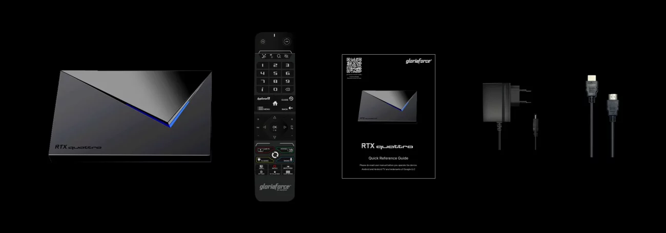 Genießen Sie die ultimative Unterhaltung mit der GloriaforceRTX Quattro Android TV BOX, die über eine intelligenteProzessor und 4K UHD-Auflösung.