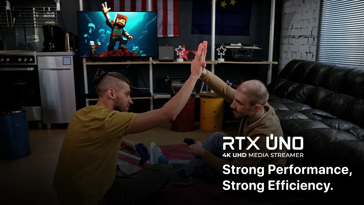 Mit einer Ethernet-Netzwerkgeschwindigkeit von 1000M und einer Bluetooth-Fernbedienung ist die Bedienung der RTX Uno Android Box einfach und komfortabel. Erleben Sie die Leistungsfähigkeit der Android-Hauptversion (Android 11) und maximieren Sie Ihr Entertainment-Erlebnis.